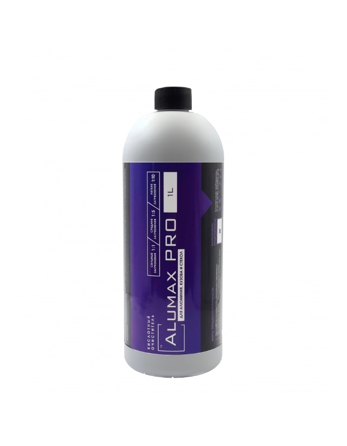Alumax PRO — высокоэффективный концентрированный кислотный очиститель, предназначенный для глубокой очистки и восстановления блеска алюминиевых, металлических (днище, подвеска, выхлопная система и другие узлы и детали из металла) стеклянных и деревянных поверхностей.