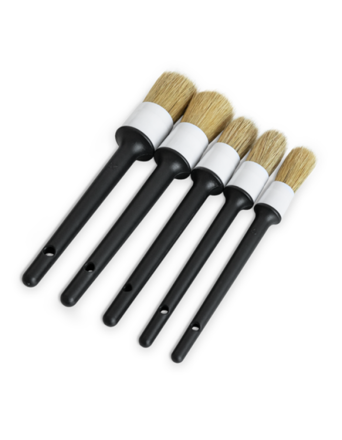 Кисточки для детейлинга из натурального волоса кабана для глубокого очищения поверхностей, комплект 5 шт.