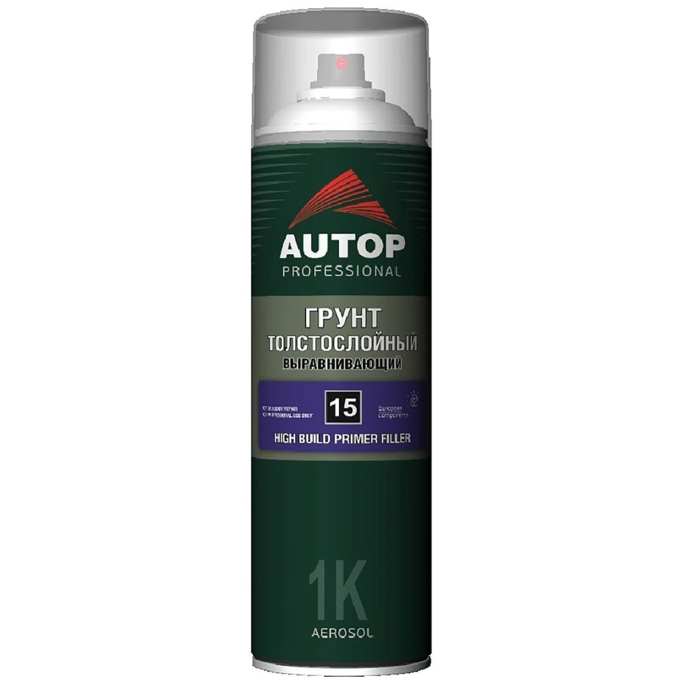 Толстослойный выравнивающий грунт применяется для подготовки поверхности при ремонтной покраске автомобилей. Предназначен для выравнивания дефектов перед нанесением последующих покрытий. Обладает отличными наполняющими свойствами, быстро сохнет и легко шлифуется. Наносится на зашлифованные старые покрытия, а также на загрунтованные поверхности черных и цветных металлов. Рекомендуется использовать антикоррозионные грунты AUTOP №8 «Грунт кислотный протравливающий» или AUTOP №14 «Грунт эпоксидный для точечного ремонта». Возможно нанесение методом «мокрый по мокрому». Объём — 650 мл.