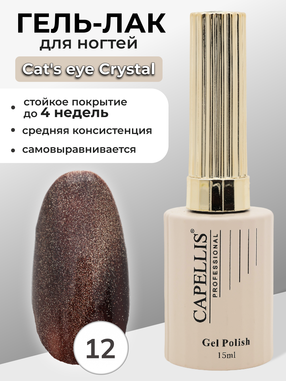 Capellis Гель лак для ногтей кошачий глаз с шиммером №12 15мл
