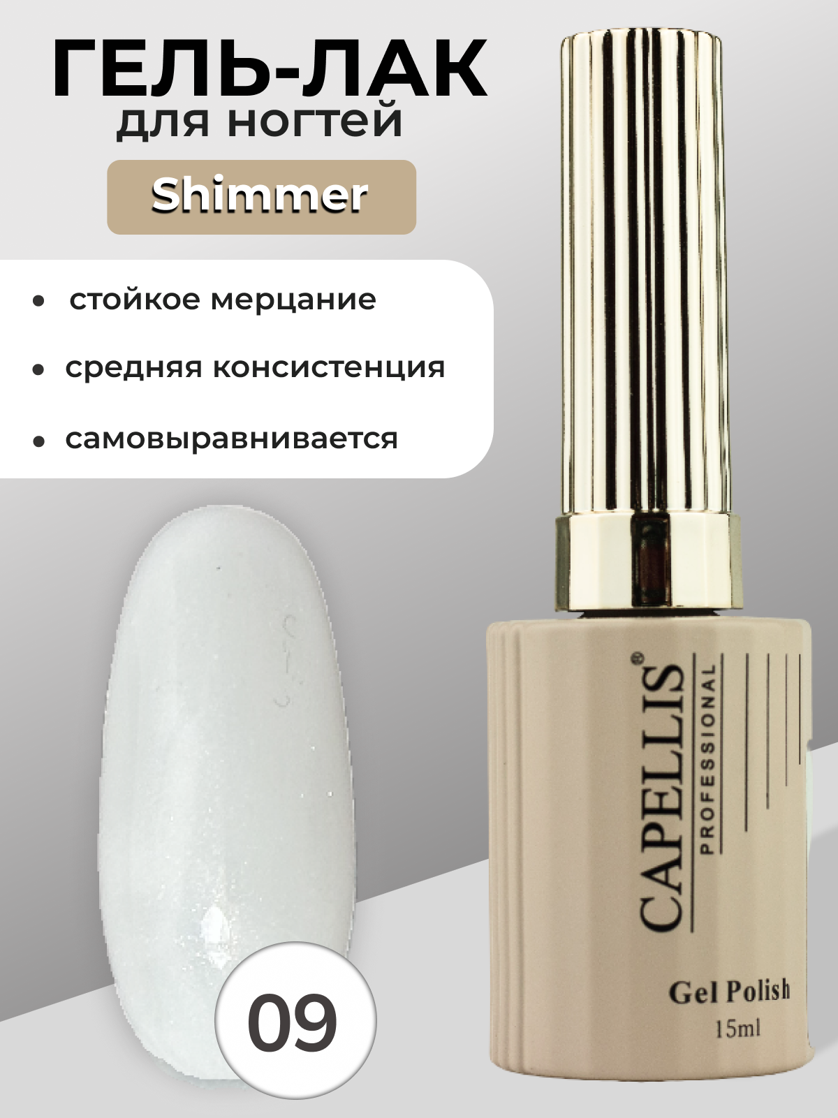 Capellis Гель лак для ногтей с шиммером №09 15мл