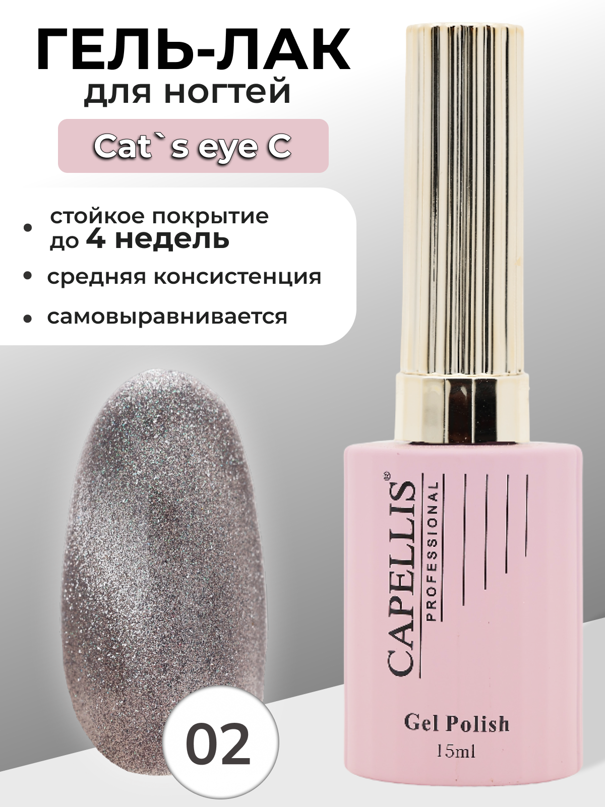 Capellis Кошачий глаз гель лак для ногтей с блестками №02 15мл