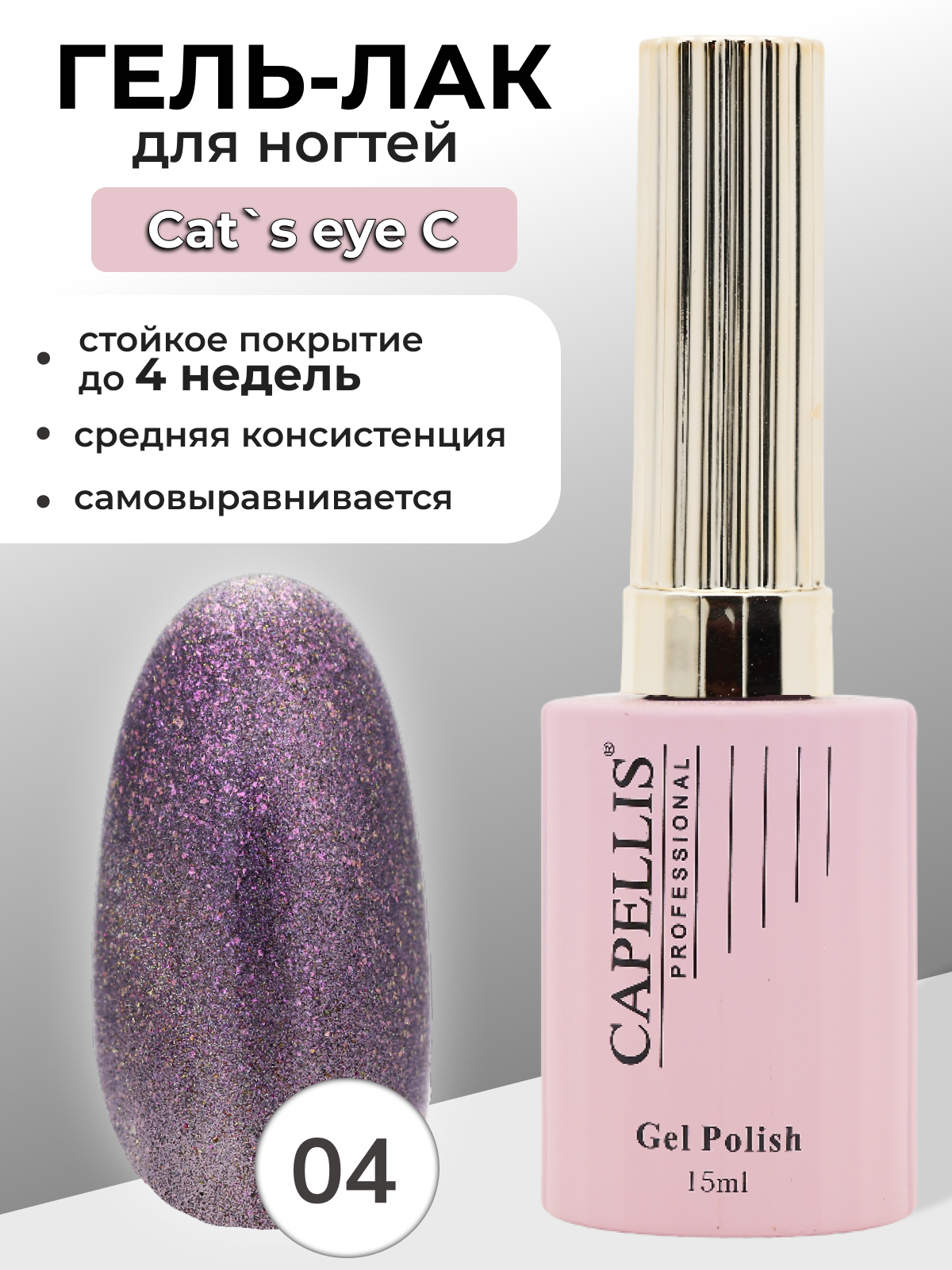Гель-лак кошачий глаз для ногтей Capellis Cat`s еye C. Его уникальная формула обеспечивает яркий сияние с любым магнитом, делая ваш маникюр по-настоящему волшебным.