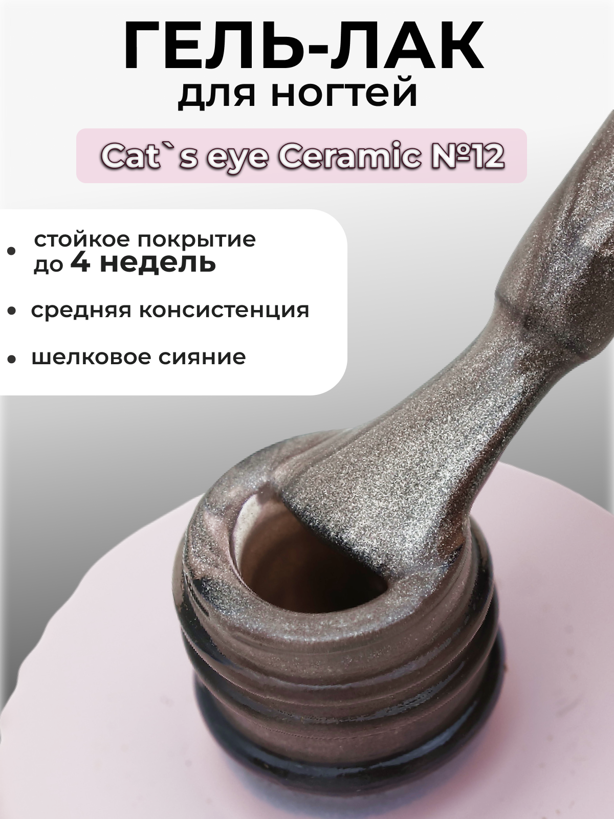 Шелковая кошка гель лак для ногтей Capellis Cat`s еye Ceramic - при нанесении на нюдовый гель, можно добиться нежного эффекта покрытия ногтей. При нанесении на чёрную подложку, цвет будет иметь более яркий эффект перелива мерцания. Гель-лак имеют микро шиммер, благодаря чему этот гель-лак смотрится очень нежно, как шелк.