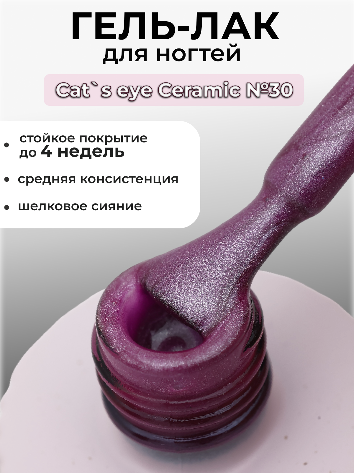 Шелковая кошка гель лак для ногтей Capellis Cat`s еye Ceramic - при нанесении на нюдовый гель, можно добиться нежного эффекта покрытия ногтей. При нанесении на чёрную подложку, цвет будет иметь более яркий эффект перелива мерцания. Гель-лак имеют микро шиммер, благодаря чему этот гель-лак смотрится очень нежно, как шелк.