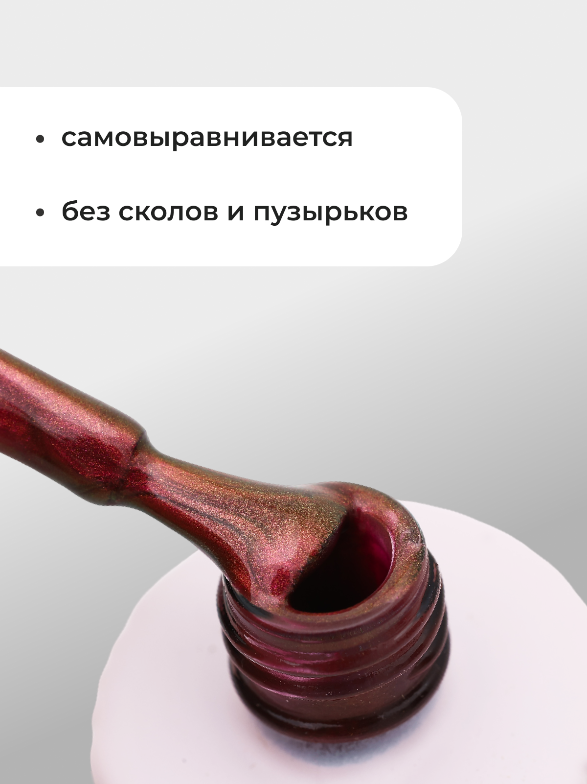 Гель лак плотной консистенции, высоко пигментированный, ровно наносится на короткие и длинные ногти без разводов и полос, не затекает под кутикулу. Позволит наслаждаться совершенством до 5 недель носки. Лак для ногтей отлично самовыравнивается, хорошо наносятся в один слой, обеспечивая идеальное покрытие без лишних усилий.
