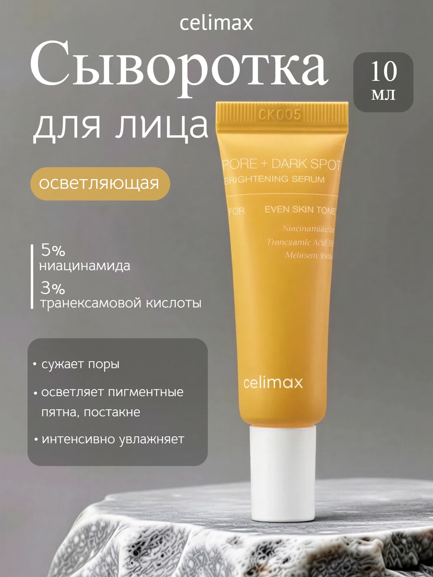 Сыворотка деликатно осветляет пигментные пятна, постакне, сальные нити. Сужает поры, выравнивает тон и текстуру кожи, придаёт естественное сияние.