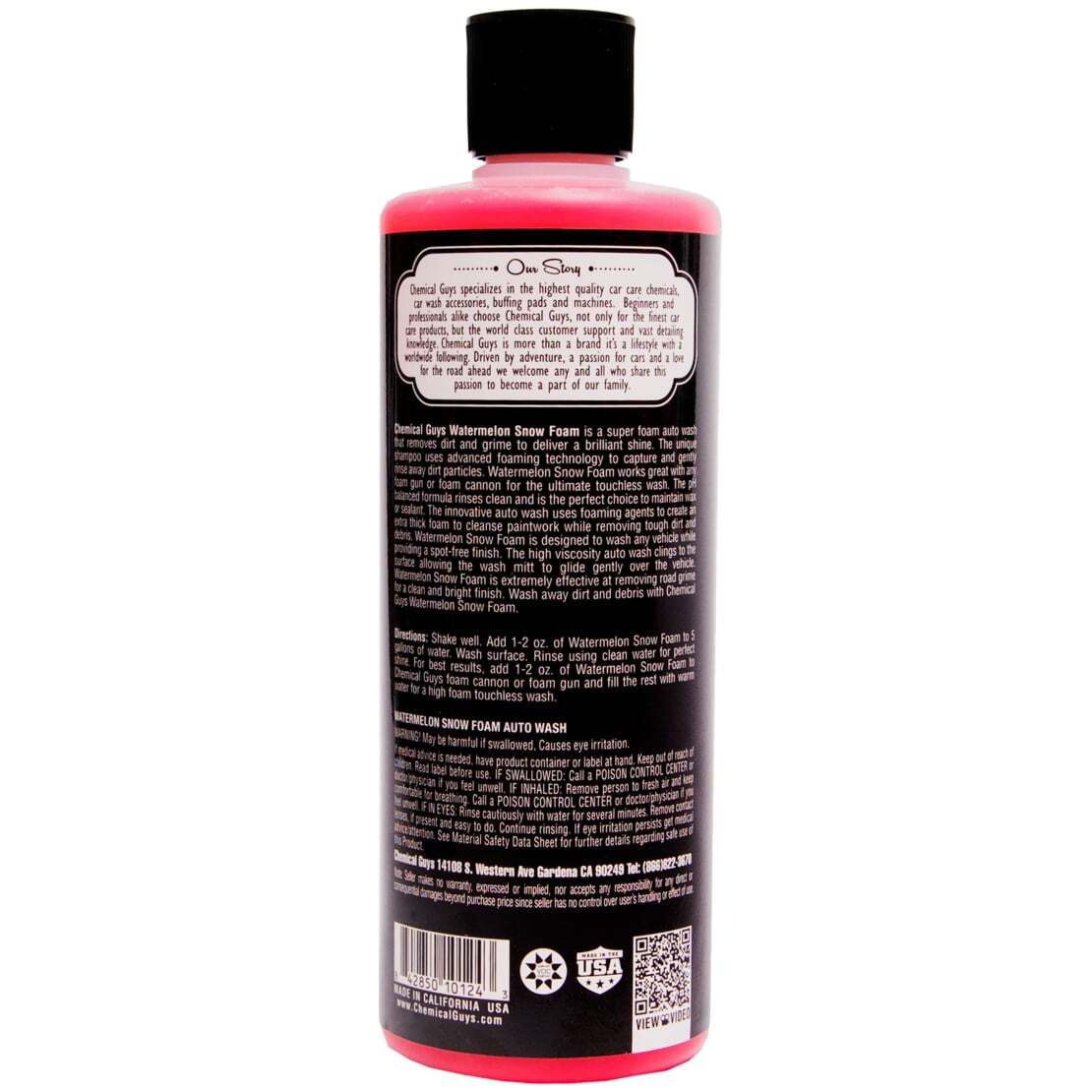 Watermelon Snow Foam - это шампунь-снежная пена с запахом арбуза, пахнет точно так же, как сочный арбуз без косточек, и образует густую пену, которую могут образовывать только шампуни от Chemical Guys!