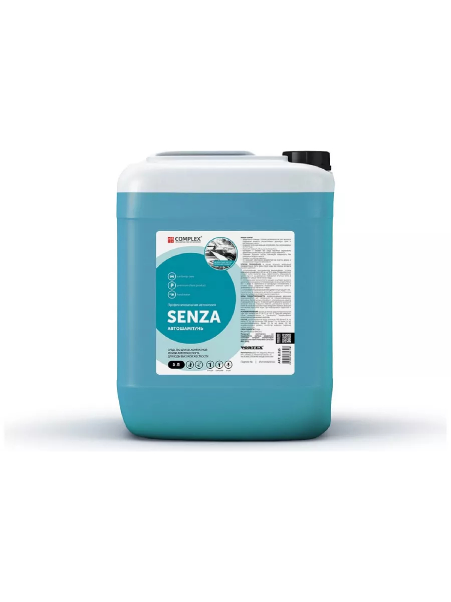 Автошампунь концентрированный бесконтактный Senza 5 л Complex 11315 - концентрированное средство для бесконтактной мойки автомобиля для воды высокой жесткости. Образует обильную густую пену. Эффективно удаляет сложные загрязнения. Не оказывает негативного воздействия на пластик, резину, ЛКП автомобиля. Легко смывается, не оставляя разводов и белесого налета. Биологическое разложение свыше 97%. Применение: Пеногенератор: 1:60 – 1:120 (200 – 700гр на 50л). Пенокомплект: 1:6 – 1:12 (80 – 160гр на 1л). Дозатрон 1 – 2%. Время выдержки 2 мин.