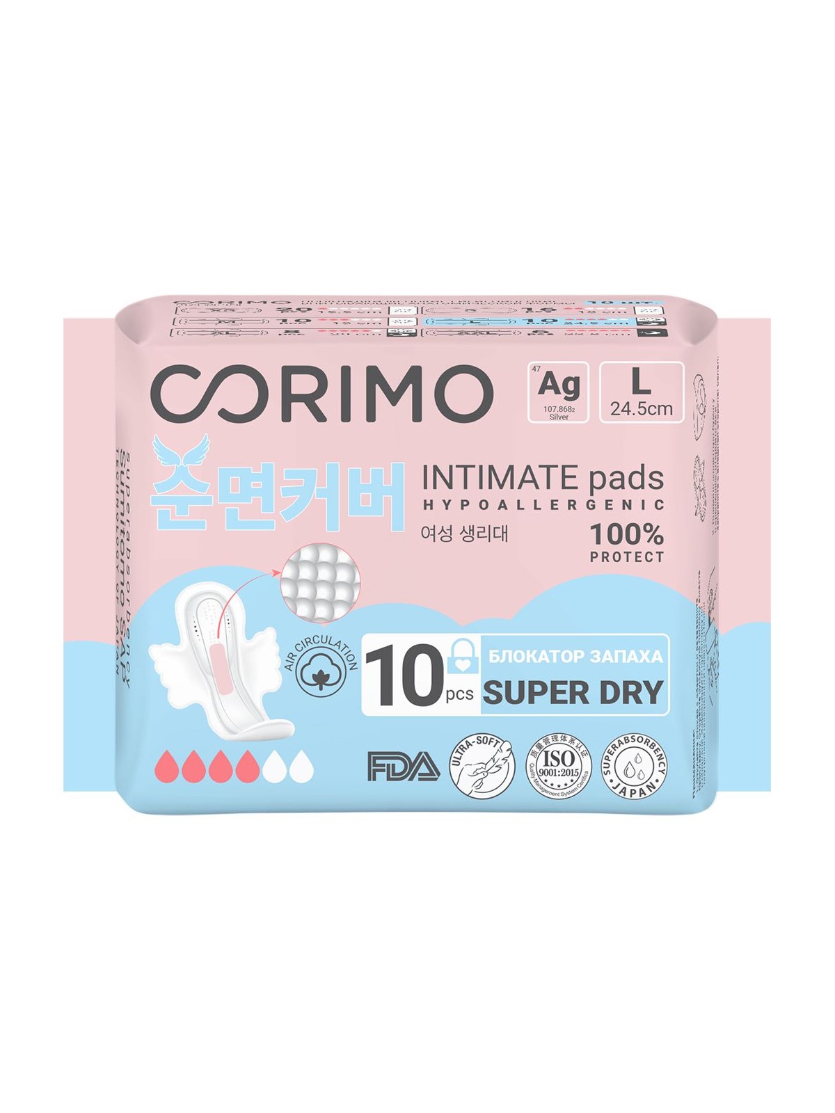 Технологичные и безопасные гигиенические женские прокладки с фигурными крылышками CORIMO разработаны совместно с лабораторией в Южной Корее. Прокладки обладают бактериостатическими свойствами, гипоаллергенны. Материалы прокладки не вызывают раздражений, высыпаний. Ультрамягкий верхних слой из нетканого материала без химических пропиток с отверстиями в виде воронки быстро пропускает жидкость внутрь прокладки и блокирует ее внутри. Японский суперабсорбент превращает жидкость в гель и впитывает в 30 раз больше своего веса. Нижний слой имеет микропоры, пропускающие воздух, но не жидкость. Клей для фиксации прокладки – 1 из компонентов жевательной резинки – для лучшей циркуляции воздуха нанесен тремя тонкими линиями, а не сплошной широкой полосой. Такая конструкция исключает образование парникового эффекта, а значит и опрелостей и покраснений на коже. Анионовый чип с наносеребром и экстрактом тиса, он препятствует размножению бактерий, возникновению запаха и гинекологических заболеваний. *Данный бренд имеет особенность производственного происхождения как в Китае ,Турции ,так и в Корее в связи с несколькими заводами-изготовителями в этих странах.