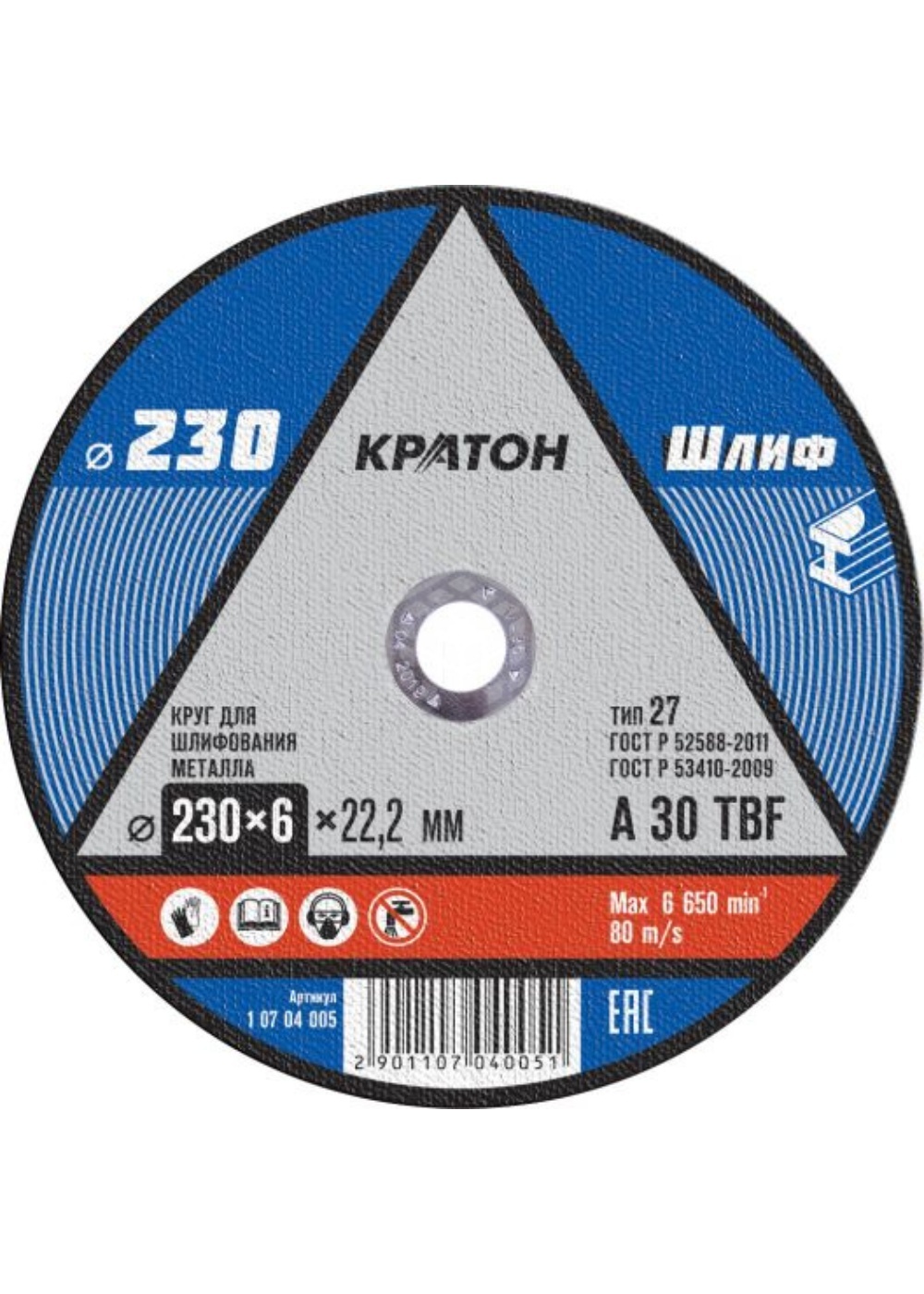 Диск шлифовальный Кратон, 230x22,2x6 мм используется для шлифовальных работ с конструкциями, деталями из жаропрочных сталей, чугуна, цветных металлов, твердых сплавов и минеральных материалов. Диск предназначен для подготовки поверхности к последующей работе с ней или для финальной обработки. Данный шлифовальный круг применяется для финальной обработки поверхности, поэтому в нём используется самый мелкий абразив.