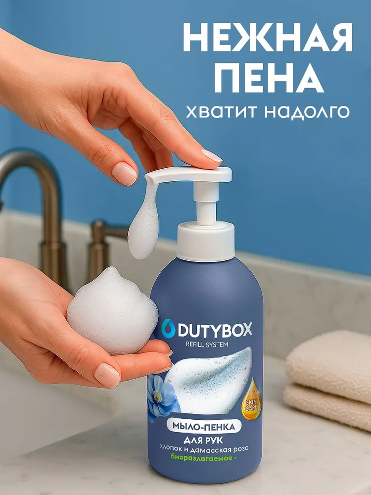 DutyBox HANDS Эко-пенка для рук "Хлопок и Дамасская роза", 500 мл