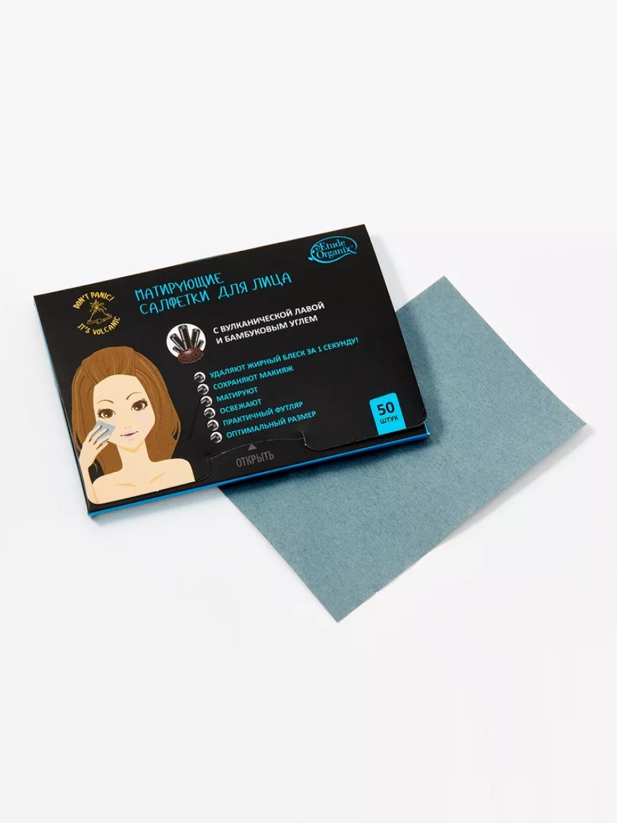 Абсорбирующая бумага из конопляных волокон с добавлением вулканической лавы и бамбукового угля поглощает излишки жира и кожного сала. Салфетки моментально избавляют от жирного блеска и помогают освежить кожу, не пересушивая её и не нарушая макияж.