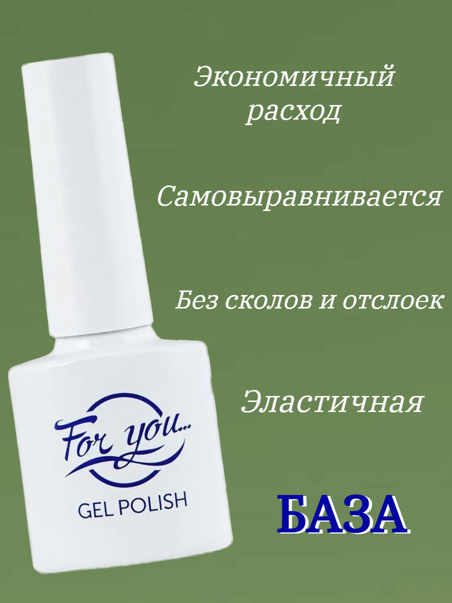 Эластичная база для гель-лака FOR YOU отлично подходят для новичков: обеспечивает легкость работы, так как не растекаются. Применяется для донаращивания уголков ногтевой пластины. Предполагает использование УФ-лампы для сушки материала. В формулу базы введен каучук - он действуют наиболее щадяще. База FOR YOU имеет преимущества: эластичность; самовыравнивание; подходит для коротких, поврежденных ногтей.