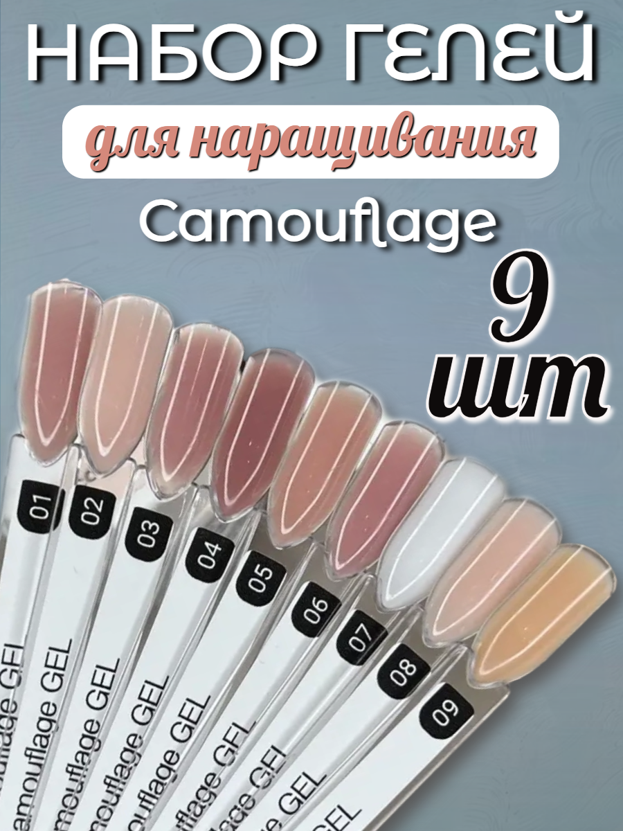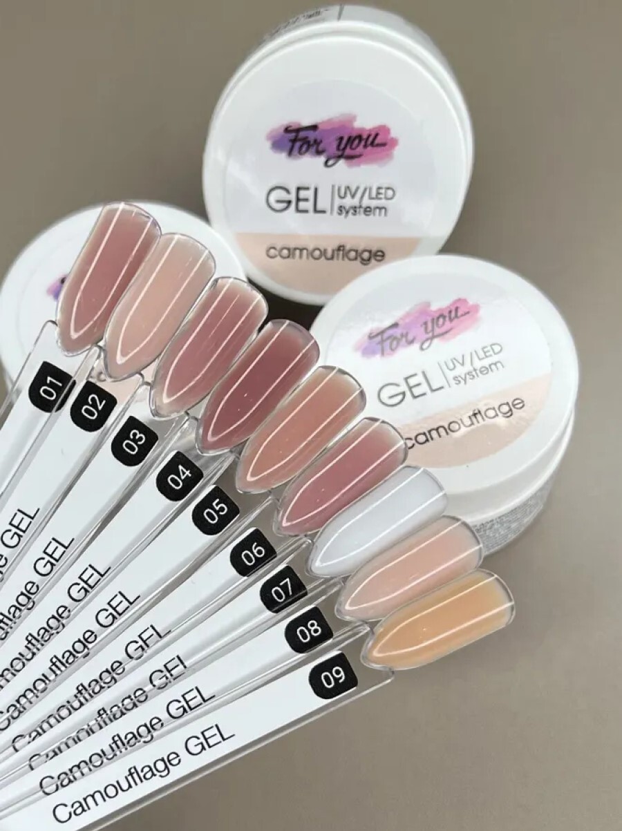 Набор для наращивания и моделирования ногтей от FOR YOU из 9 штук по 15 гр. В наборе представлены разные камуфлирующие оттенки , что позволяет выбрать подходящий материал для каждого случая.