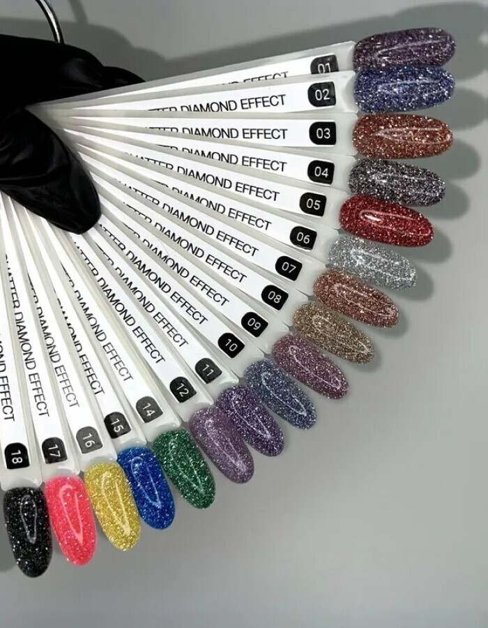 Светоотражающий гель лак имеет множество оттенков - от светлых до насыщенных ярких пигментов. Подходит для любой ногтевой пластины, как для профессионального использования, так и для домашнего применения.