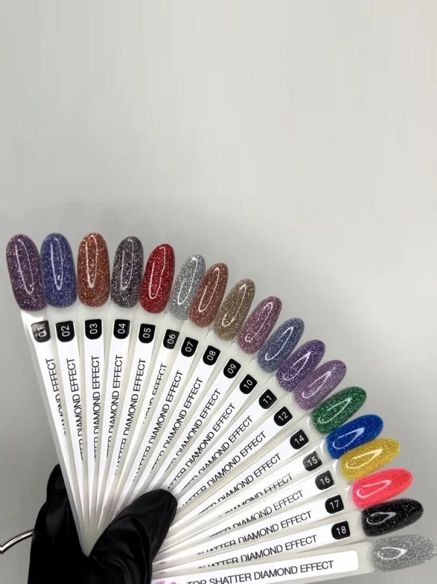 Светоотражающий гель лак имеет множество оттенков - от светлых до насыщенных ярких пигментов. Подходит для любой ногтевой пластины, как для профессионального использования, так и для домашнего применения.