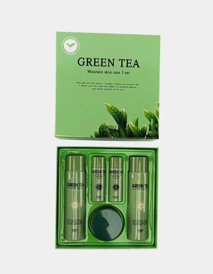 В состав всех уходовых продуктов от Giinsu включен экстракт зеленого чая, который способствует удержанию влаги в глубинных слоях эпидермиса, снимает раздражение, сглаживает поры. Набор для лица уходовый с зеленым чаем Skin Care 3 Set Green Tea рекомендован экспертами для ежедневного применения.