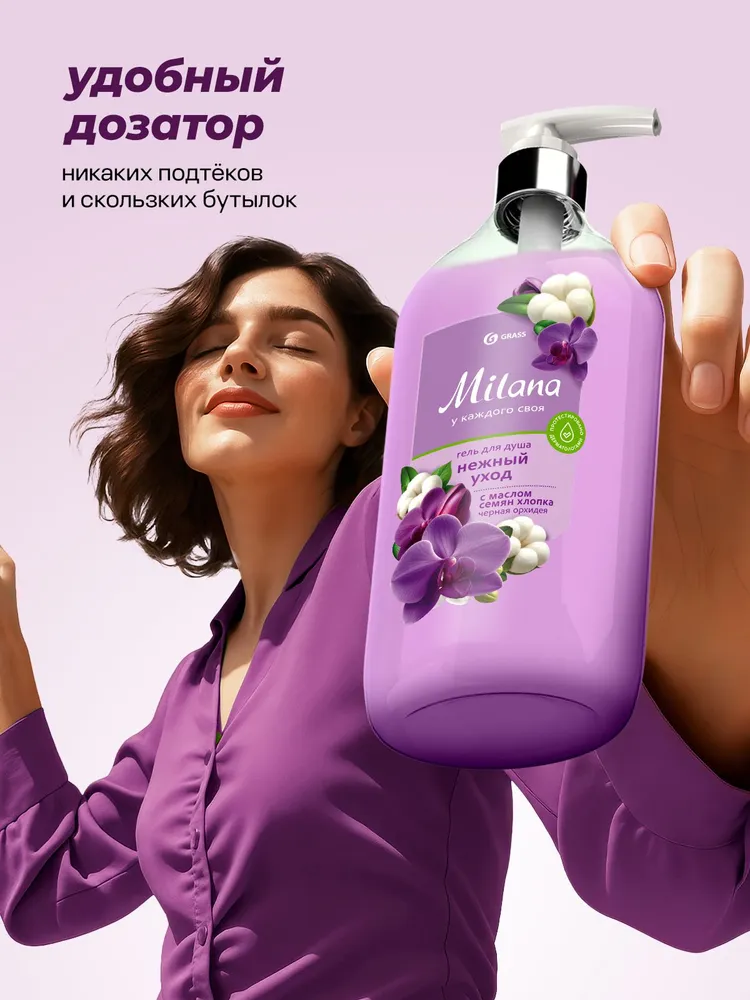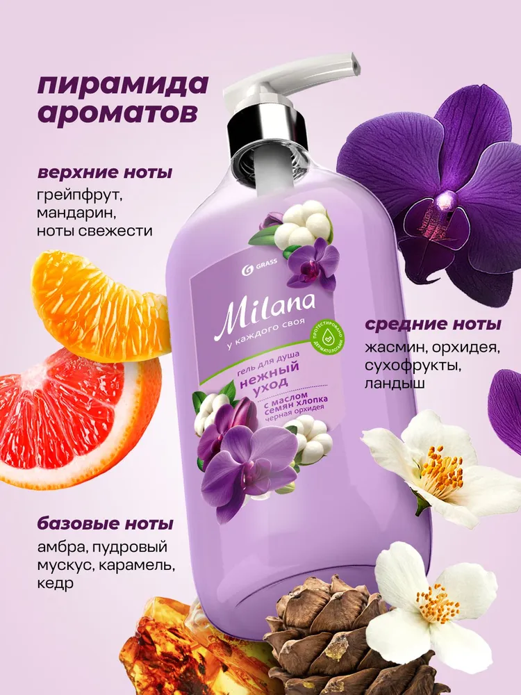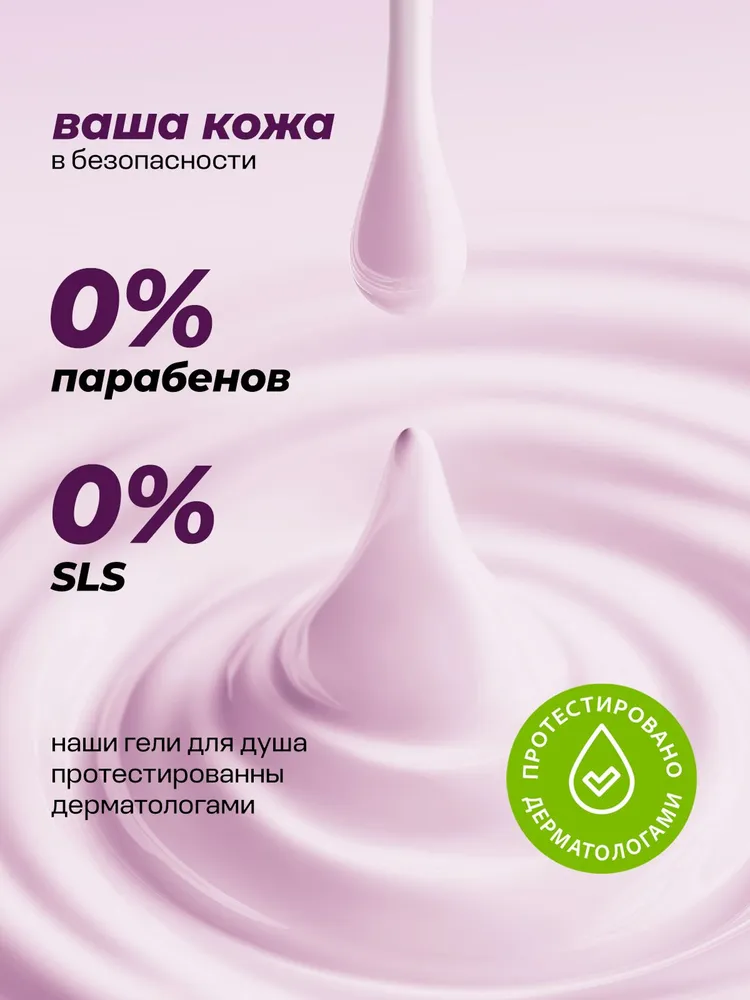 Крем-гель для душа - Окутывает кожу нежностью хлопка и утонченным ароматом орхидеи. Подходит для ежедневного применения, благодаря безопасному составу. рН с уровнем нейтральным к коже. Бережное очищение. Гипоаллергенно. Подходит для чувствительной кожи.