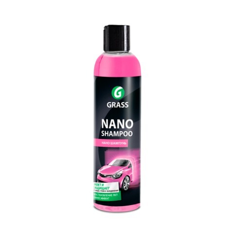 GraSS Наношампунь "Nano Shampoo"Высокопенный шампунь Grass «Nano Shampoo» совмещает в себе мойку и защиту лакокрасочного покрытия автомобиля. Он восстанавливает и придает блеск лакокрасочной-поверхности, создает тонкую защитную пленку на кузове, защищающую от воды, грязи, обледенения. Обработанная поверхность дольше остается чистой и легко моется. Состав держится на кузове до 30 дней. При повторных применениях наносредства продолжительность защитного покрытия увеличивается.Состав:вода, поверхностно-активные вещества, комплексообразователи, ингибитор коррозии, активные добавки, отдушка, краситель.Способ применения:1. Предварительно помыть автомобиль с помощью любого средства для бесконтактной мойки GraSS. 2. Нанести наношампунь на поверхность. Это можно сделать вручную губкой или с помощью пенокомплекта. Для ручной мойки необходимо развести концентрат из расчета 50 мл на 10 л теплой воды. Для нанесения с помощью пенокомплекта (1л) потребуется 100 мл концентрата. После нанесения средства следует растереть его на поверхности губкой или специальной перчаткой. 3. Смыть шампунь водой.