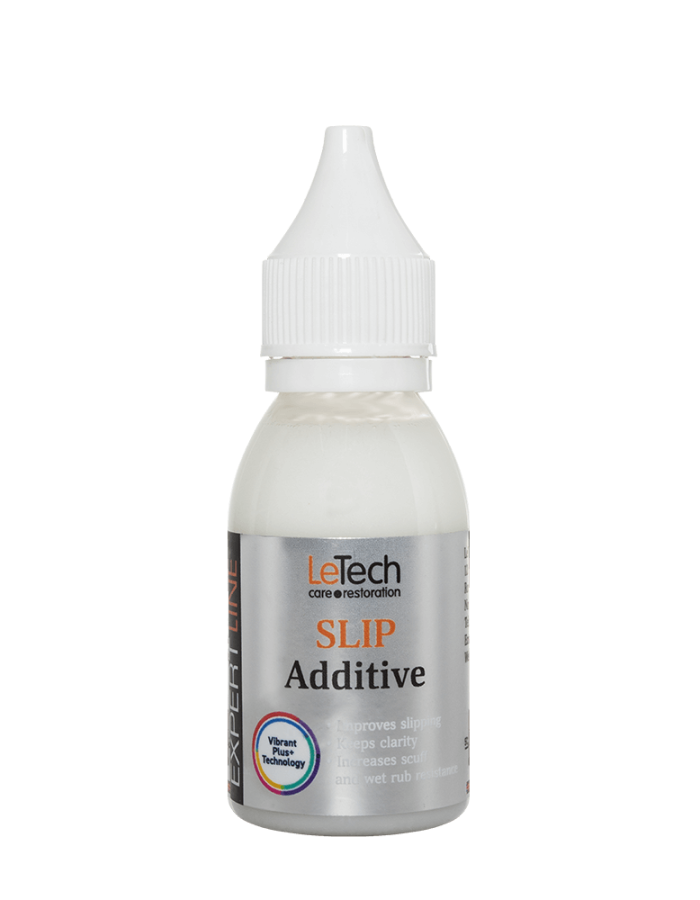 Противоизносная Добавка Slip Additive EXPERT LINE от LeTech , служит для формирования на поверхности кожи более стойкого к износу покрытия, которое будет также давать дополнительную защиту от царапин, задиров и др. механических повреждений. Добавление добавки Slip Additive в финишные покрытия, не только улучшает противоизносные характеристики кожи, но также улучшает тактильное восприятие поверхности.