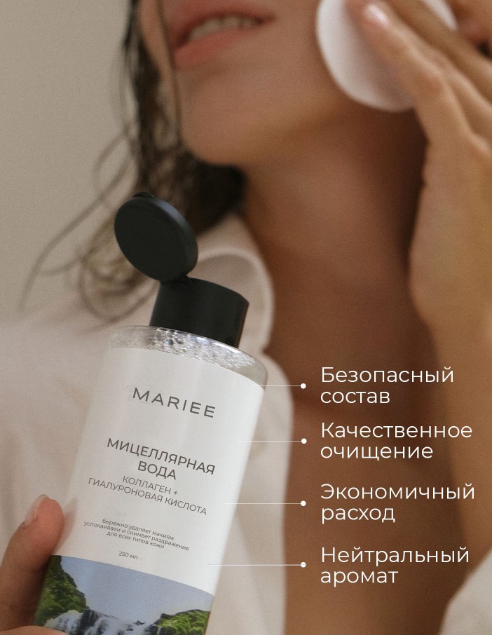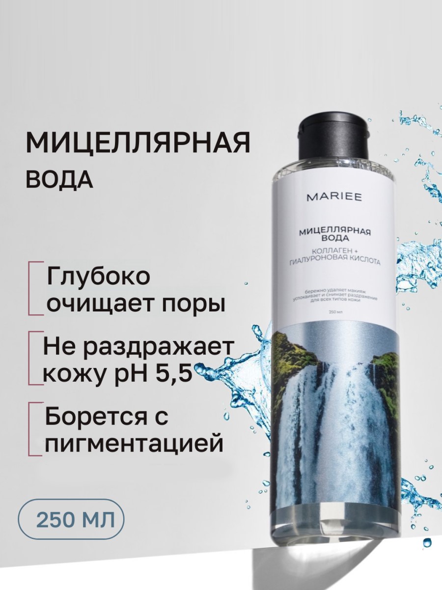 Мицеллярная вода Mariee Коллаген и гиалуроновая кислота, 250 мл.