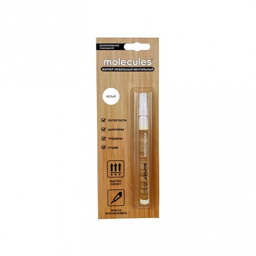 Мебельный вентильный маркер Molecules предназначен для быстрого и удобного устранения неглубоких царапин и потертостей на деревянных, ламинированных, пластиковых и металлических поверхностях. Может применяться для затемнения краев царапин перед использованием мебельных восков и карандашей, а так же для восстановления текстуры поверхности после реставрации повреждения.