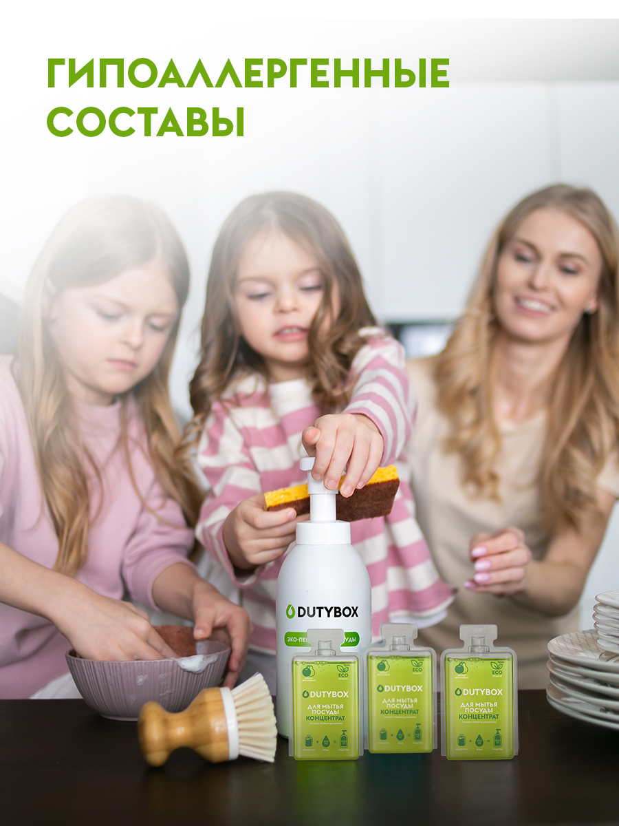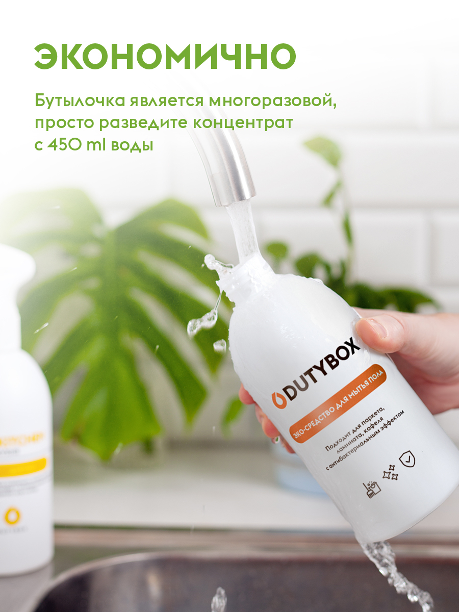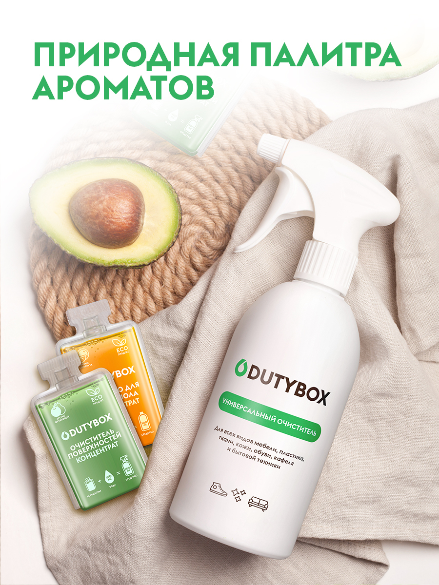 Полный набор средств по уходу за домом от Dutybox - это современный и стильный помощник для повседневной жизни. Заказав комплект вы получаете по 2 капсулы с концентратом каждого средства и многоразовые бутылки для разведения и использования.