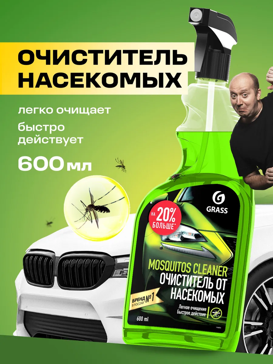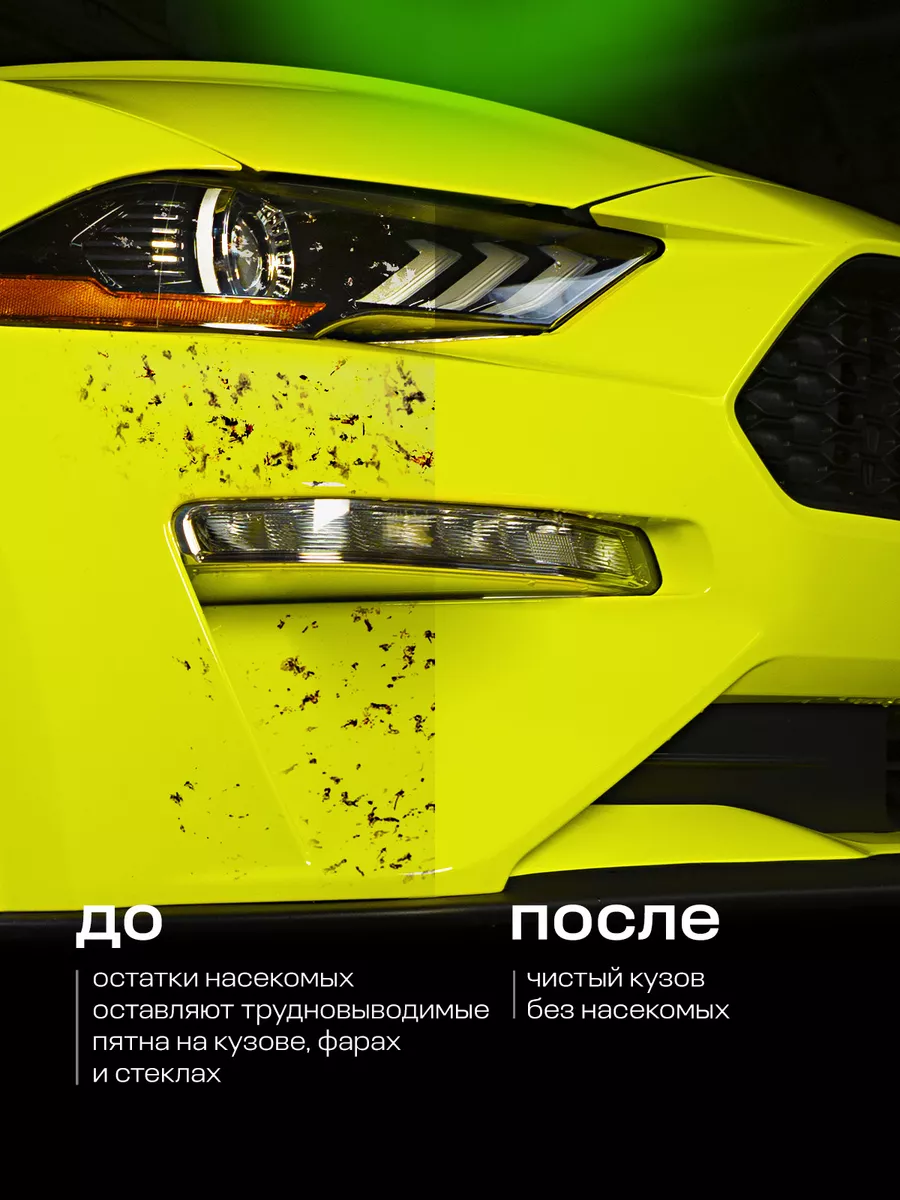 насекомых со стекол, пластиковых и хромированных бамперов,
