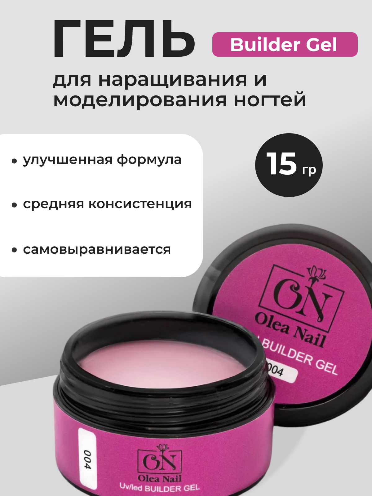 Olea Nail Гель для наращивания ногтей Builder Gel №004 15 мл