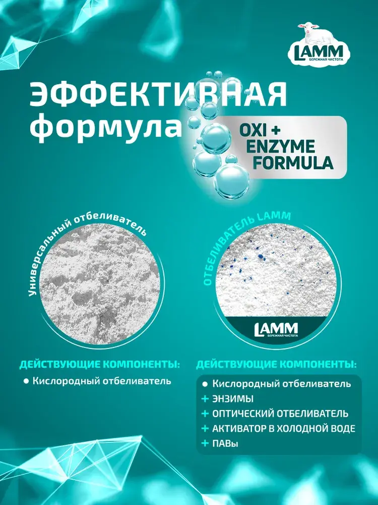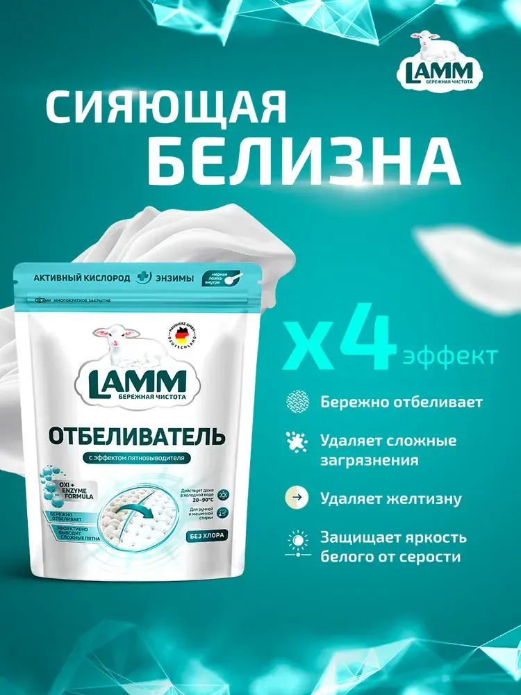 Отбеливатель с эффектом пятновыводителя для белых тканей порошкообразный «LAMM»
