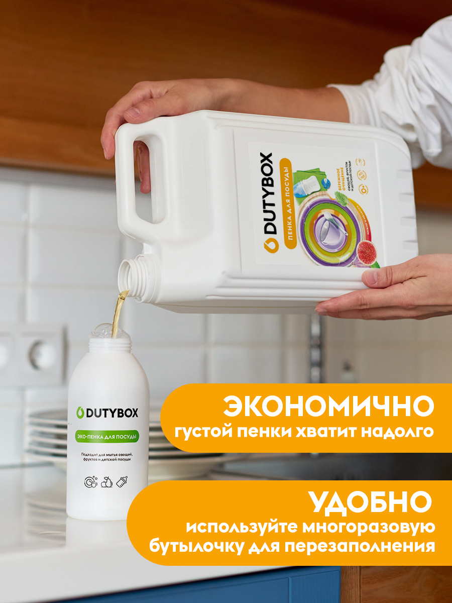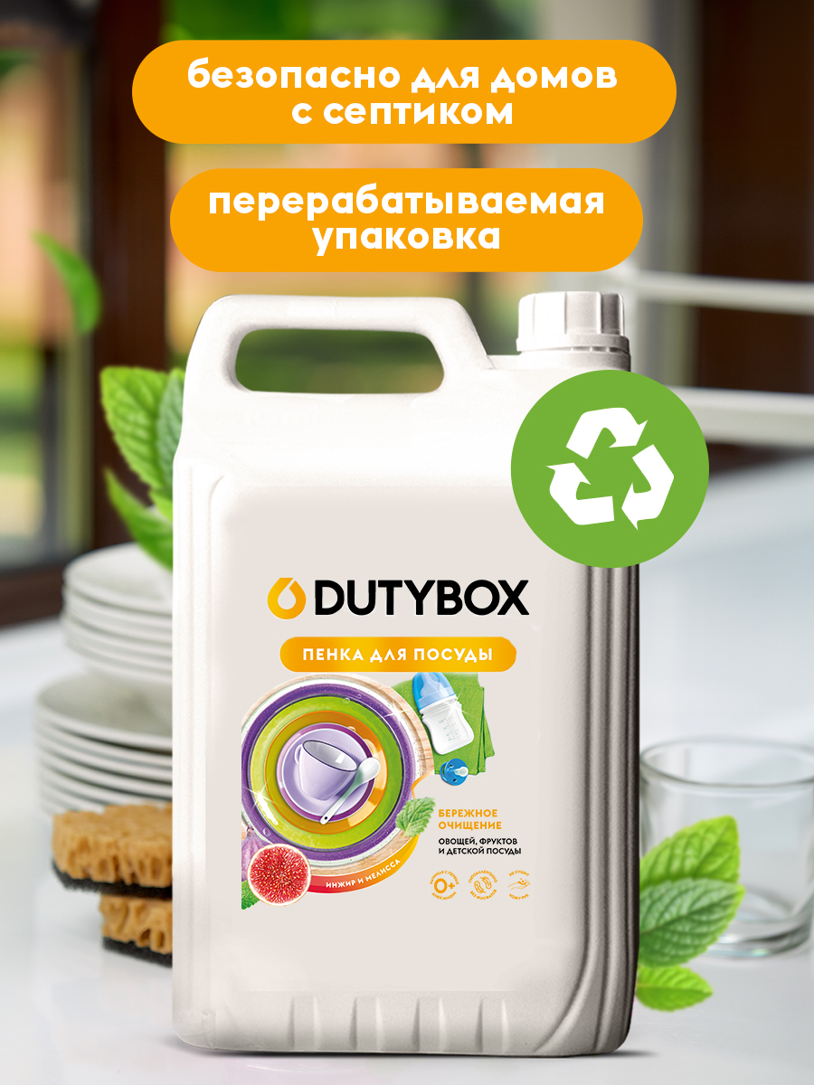 Эко пенка для мытья посуды 5 л от Дьютибокс, в с приятным ярким ароматом Инжира и Мелиссы.