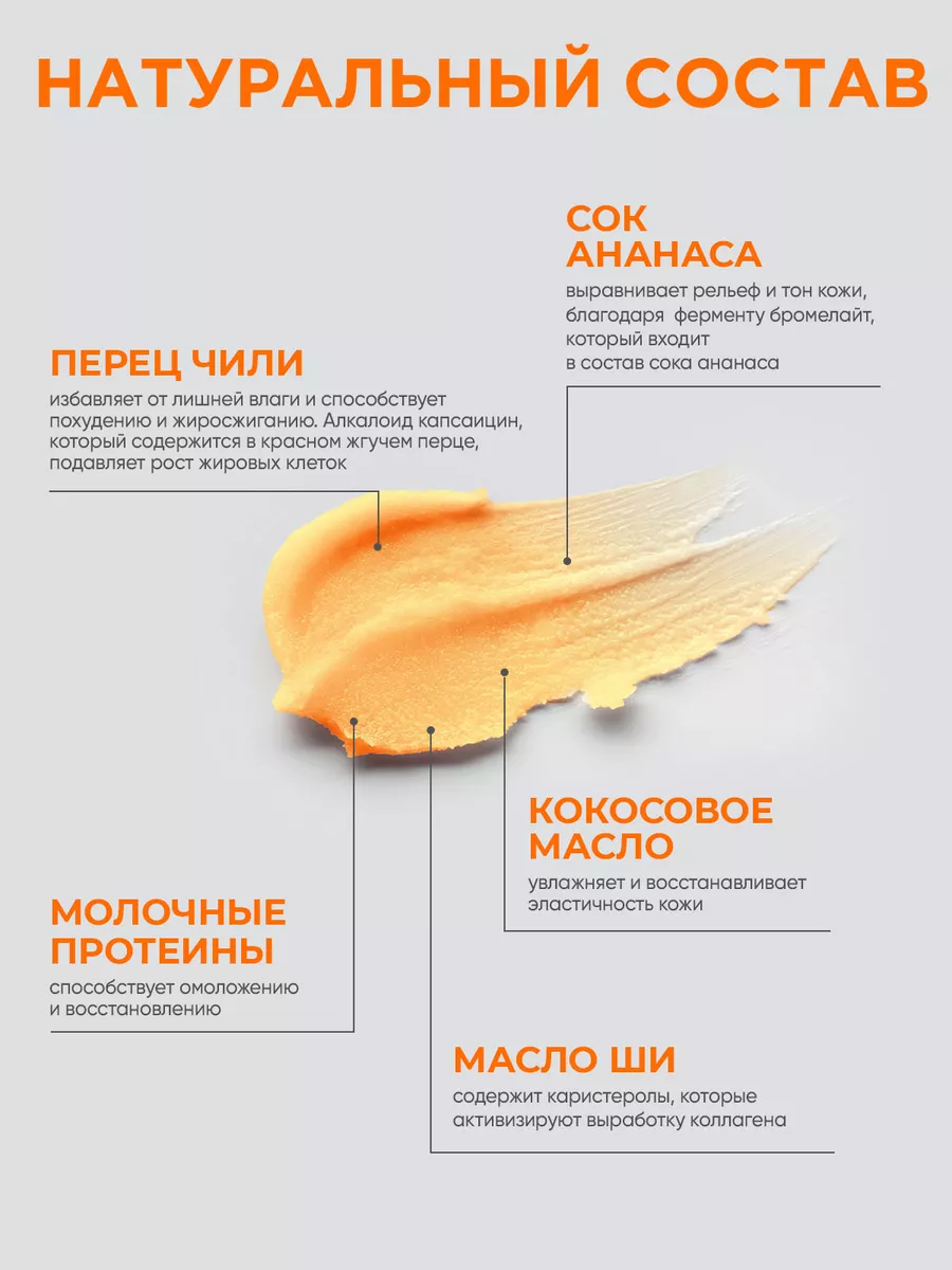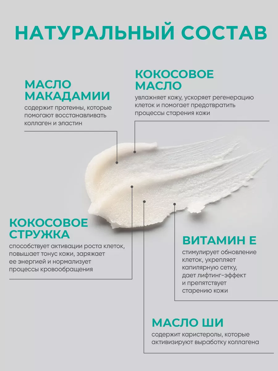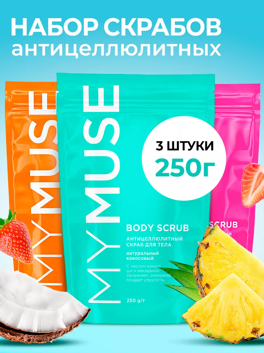 В подарочном наборе для женщин Тебя ждут три прекрасных натуральных Скраба для тела My Muse кокосовый скраб с маслами , сахарный скраб с соком клубники и солевой скраб с соком ананаса и перца чили. 1) Натуральный сахарный скраб для тела антицеллюлитный с соком клубники, молочными протеинами и маслом кокоса. В соке клубнике содержится медь, которая позволяет коже вырабатывать собственный коллаген в необходимых количествах, кожа становится упругой и гладкой, молочные протеины способствуют омоложению и восстановлению, Баскунчакская соль снимает отечность и ускоряет процесс жирозжигания , сахарный скраб питает и подтягивает кожу, а кокосовое масло увлажняет и восстанавливает эластичность. 2) Солевой антицеллюлитный скраб для тела , разогревающий с соком ананаса и перцем чили, молочными протеинами и маслом кокоса содержит фермент бромелайн, который выравнивает рельеф и тон кожи, красный перец избавляет от лишней влаги и способствует похудению, рассасывая жир. Алкалоид капсаицин, с которым связана жгучесть красного перца, подавляет рост клеток жировых тканей. 3) Кокосовый скраб для тела содержит набора масел, которые способствуют активации роста клеток, повышают тонус кожи, заряжают ее энергией и нормализуют процессы кровообращения. Масло Ши содержит каристеролы, которые позволяют активизировать выработку коллагена. Витамин Е - витамин молодости, стимулирует обновление клеток, дает лифтинг-эффект и препятствует старению кожи. Из косметических средств MY MUSE можно выбрать новогодние подарки с заботой о тела и волосах. В нашем магазине вы найдете подарки на новый год 2024 и сможете подобрать подарок маме, подруге, коллеге, сестре, любимой, девушке. Подарочный набор для женщин MYMUSE подойдет для любого праздника, таких как Новый год, День Святого Валентина, 14 февраля, День всех влюбленных, День рождения, 8 Марта и просто любой приятный повод. Позаботитесь о праздниках заранее и выбирайте новогодний подарок уже сейчас.