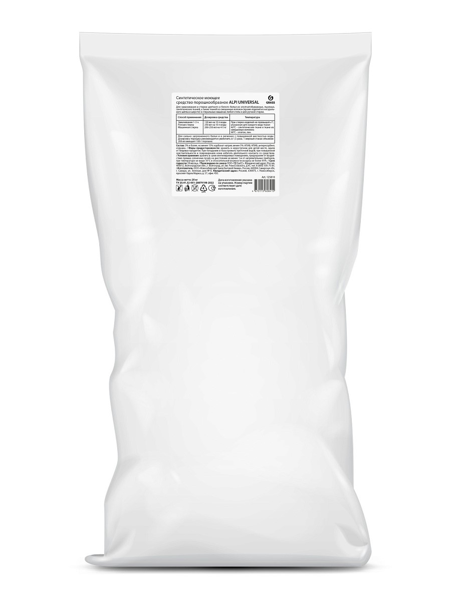 Синтетическое моющее средство порошкообразное Alpi universal предназначен для замачивания цветного и белого белья из хлопчатобумажных, льняных, синтетических тканей, а также тканей из смешанных волокон (кроме изделий из натурального шёлка и шерсти) в стиральных машинах любого типа и для ручной стирки.