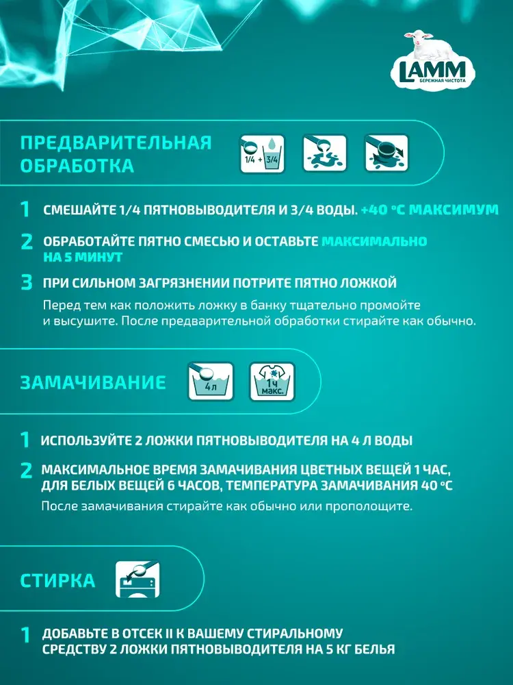 Пятновыводитель для тканей порошкообразный «LAMM»