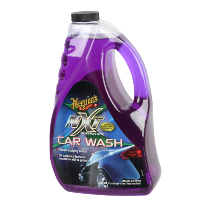 \nШампунь поколения NXT Generation Car Wash 1,89л\n\nОпыт Meguiar’s в разработке технологий для мытья автомобиля привел к созданию синтетического концентрата для мойки, который легко отмывает достаточно сложные пятна и дорожную грязь!\n\nОн работает эффективно и в то же время безопасно!\n\nЕго рН- сбалансированная, биоразлагаемая формула не повреждает нанесенное восковое покрытие, а так же бережно относится ко всем окрашенным поверхностям, резине, винилу и пластмассовым деталям внешней отделки.\n\nШампунь для ручной мойки Meguiar’s® NXT Generation Car Wash является первым шагом на пути к блеску как у выставочных авто!\n\n* Идеален для подготовки к нанесению Защитного воска Meguiar’s® NXT Generation Tech Wax ™ 2.0.\nРЕКОМЕНДАЦИИ ПО ПРИМЕНЕНИЮ