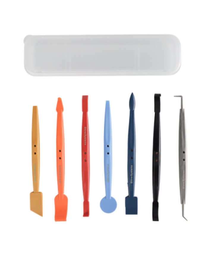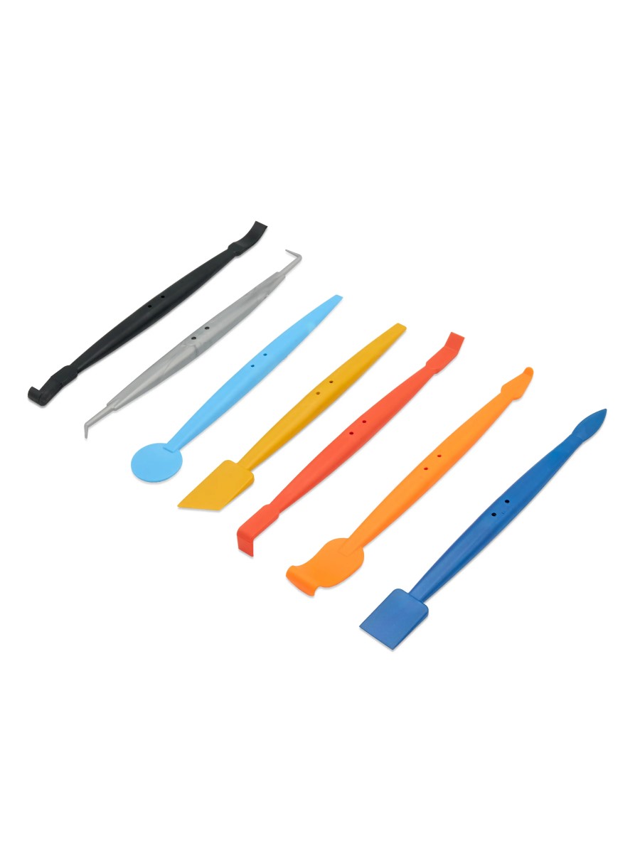 Инструмент для работы с краями, набор состоит из 7 продолговатых пластиковых лопаток в кейсе из прозрачного пластика, оснащеных магнитами. Используется при инсталляции антигравийных пленок, для работы с труднодоступными местами и подворотами.