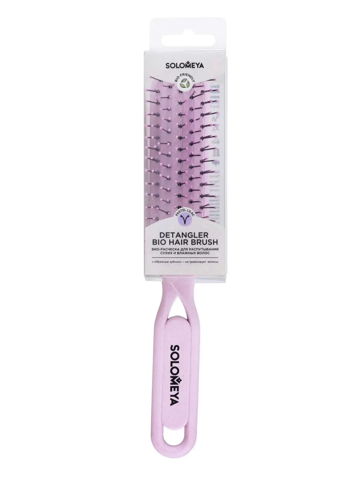 Био-расческа для волос пастельно-сиреневого цвета - это комфортное расчесывание, которое дарит легкий и приятный массажный эффект. Расческа имеет подвижный корпус и мягкие гибкие V-образные зубчики, что обеспечивает аккуратное скольжение по волосам и отсутствие спутываний. Гибкая конструкция и удобная форма ручки создает дополнительный комфорт при использовании, а компактность позволяет брать расческу с собой и использовать где угодно. Массажная расческа изготовлена из экологически чистого биоразлагаемого материала BIO-FRIENDLY, а именно - из натуральной пшеницы. Био-расческа подходит для любого типа волос: прямых, кудрявых, сухих, влажных, а также нарощенных или ослабленных - она легко распутывает и деликатно расчесывает даже самые непослушные волосы. Совет: подходит для распределения бальзамов и масок для волос