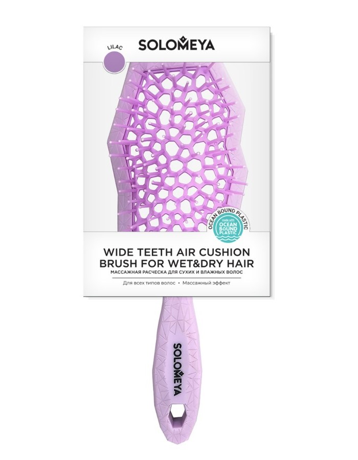 [Solomeya] Массажная расческа для сухих и влажных волос с широкими зубьями СИРЕНЕВАЯ Wide Teeth Air Cushion Brush For Wet&Dry Hair, 1шт