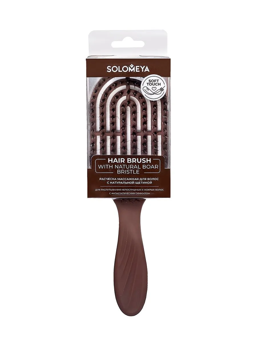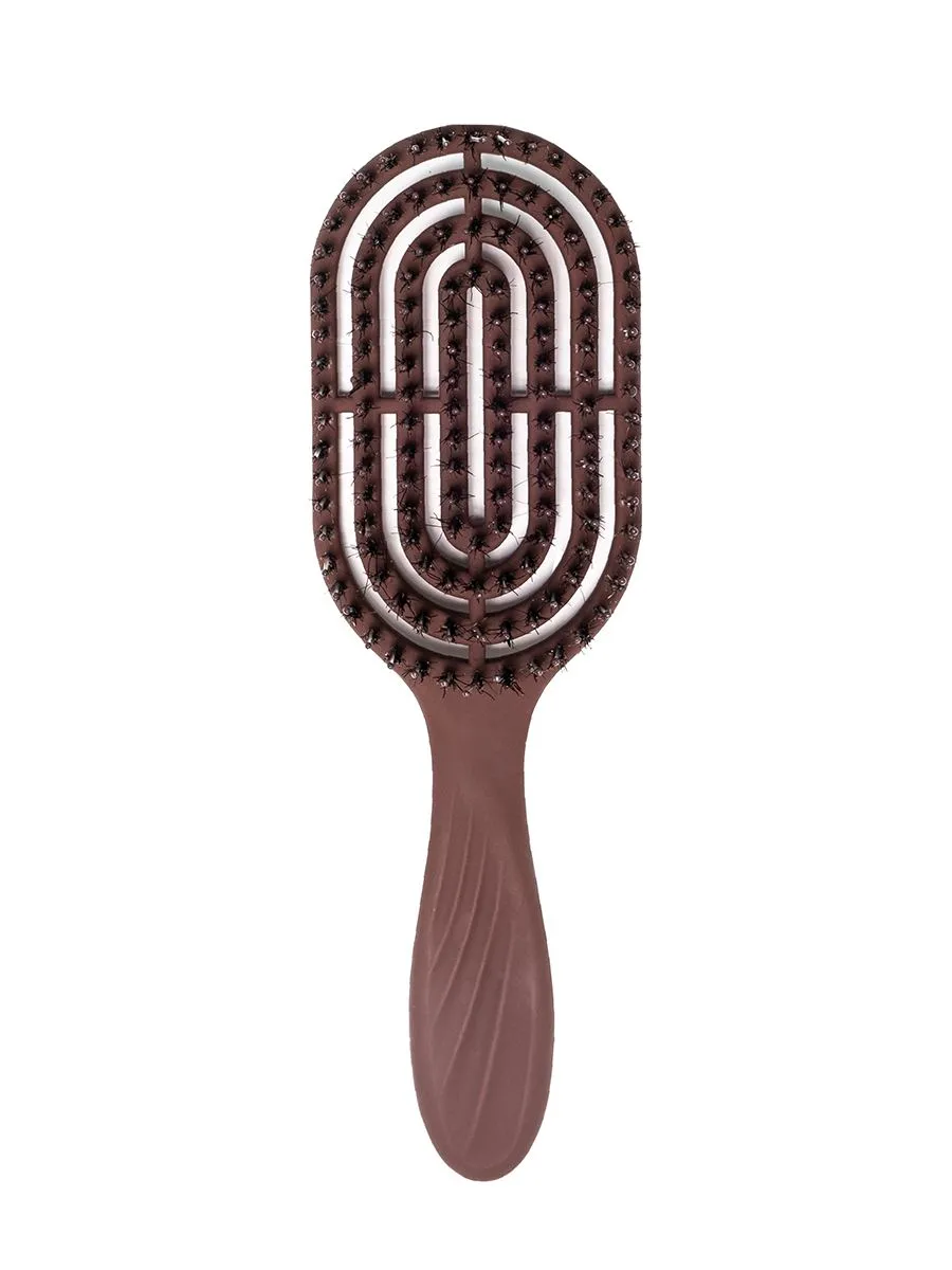 Расческа с легким массажным эффектом обеспечит мягкое расчесывание и придаст волосам здоровый и аккуратный вид. • Натуральная щетина полирует волосы, делая волосы гладкими и блестящими. • Бережное распутывание. Не травмирует, деликатно распутывает даже самые непослушные волосы. • Массажный эффект стимулирует рост волос. • Подходит для любого типа волос и чувствительной кожи головы. • Soft touch материал и зубчики из полимерной смолы. • Трендовый цвет: коричневый - новый черный! • Максимальная температура нагрева 80 °C.