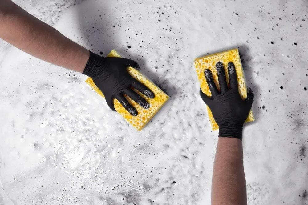 - Нанести на очищаемую поверхность в виде раствора или пены.