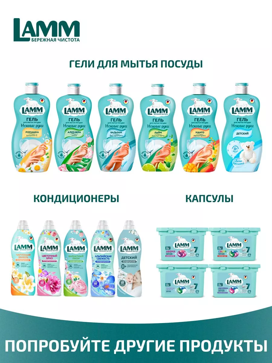 Гель для стирки LAMM "АЛЬПИЙСКАЯ СВЕЖЕСТЬ" с пониженным пенообразованием с биодобавками эффективно и бережно отстирывает белые и светлые изделия из хлопчатобумажных, льняных и синтетических тканей, а также тканей из смешанных волокон в стиральных машинах любого типа и при ручной стирке.