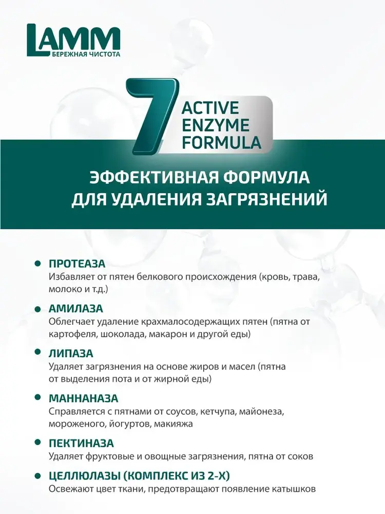 Входящие в состав энзимы глубоко проникают в волокна ткани, высвобождают частицы грязи и возвращают живой цвет любимым вещам, гарантируя высокое качество стирки.