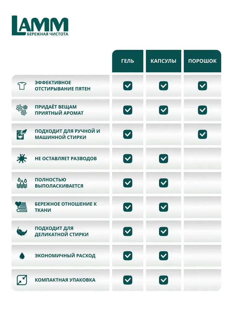 Средство ухаживает за тканями, благодаря чему одежда и белье становятся не только чистыми, но и приятными на ощупь.