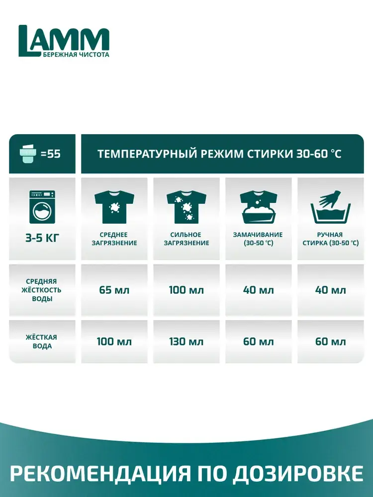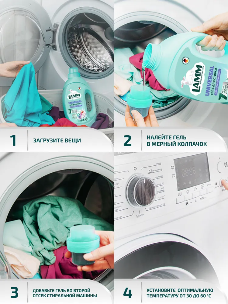 Гель для стирки LAMM "UNIVERSAL" с пониженным пенообразованием с биодобавками эффективно и бережно отстирывает белые и цветные изделия из хлопчатобумажных, льняных и синтетических тканей, а также тканей из смешанных волокон в стиральных машинах любого типа и при ручной стирке.